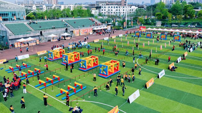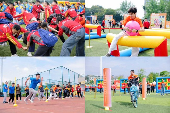 记者看到,在“明星嘉宾挑战赛”区,成功组队的“小哥”们向姚夏、张林海、刘云雨等组成的明星队及嘉宾队发起轮番挑战,跨栏、背对背运球、绕桩骑行、趣味足球挑战赛等,双方各展所长斗得难分难解;在和平精英挑战区,“小哥”们与杭州亚运会和平精英冠军刘云雨1V1进行PK;在王者荣耀团体比赛区,“小哥”们化身电竞选手,各战队之间打得有来有回;争夺最为激烈的是拔河比赛,在体育公园的跑道上,参赛“小哥”按单位组队,每日搬运数百件包裹的他们紧握长绳不断发力,绳子中央的红标左右移动……首次参赛就和队友合作拿到拔河冠军的陈磊,一手拿着奖牌一手拿着奖品笑着对记者说:“平时在物流仓储基地搬运,力气再大也没几个晓得,今天比赛终于让我好好展示了一盘!”连续2年都参加成都小哥运动会的张强在无人机足球体验区玩了很久,他说:“之前全国无人机足球比赛在双流举办,我送餐到过现场几次,看上去感觉挺好玩,这次来好好过了一把瘾。”